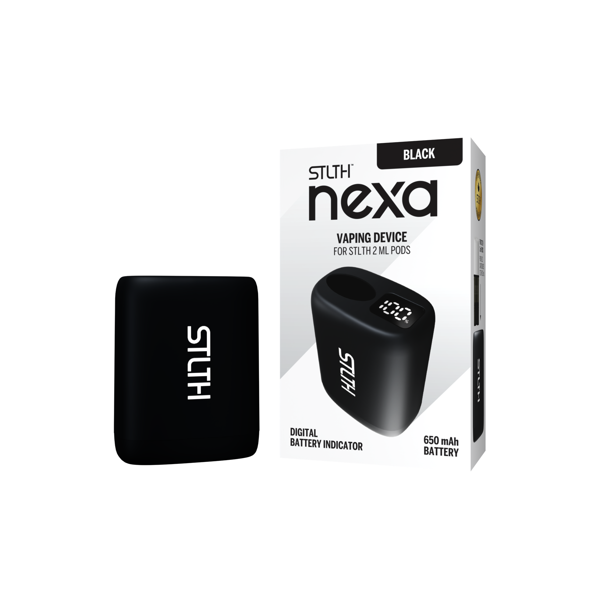 Wrapped in a premium black rubberized finish, the STLTH NEXA is not only sleek but also highly functional, making it the ideal device for your favourite STLTH 2ML Pods.